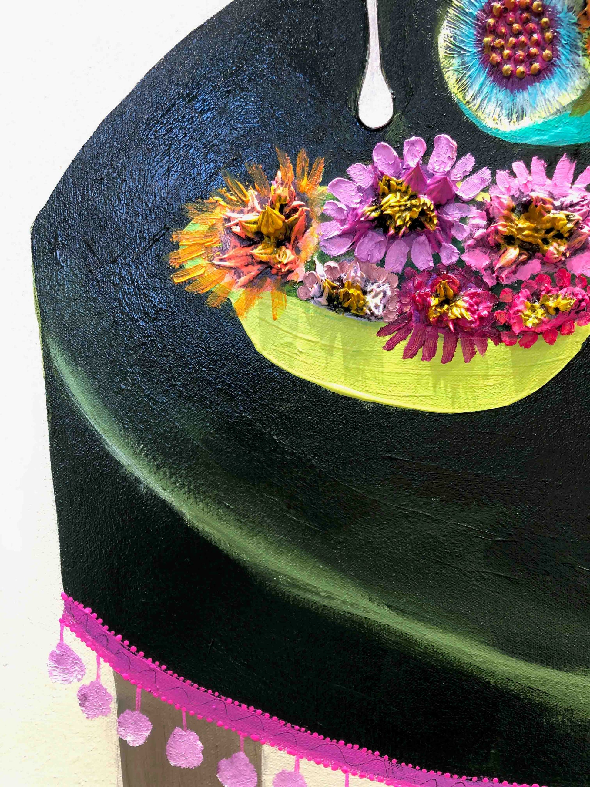 This is an original oil painting. The sides are painted gloss black and there is a wire on the back. It comes ready to hang with no framing needed.