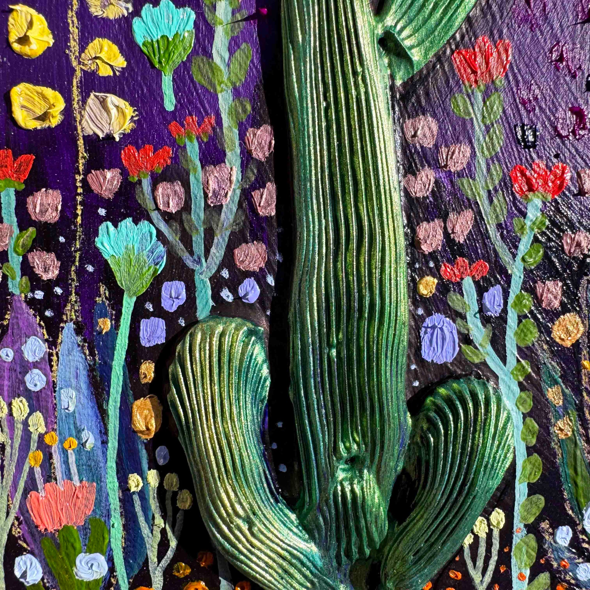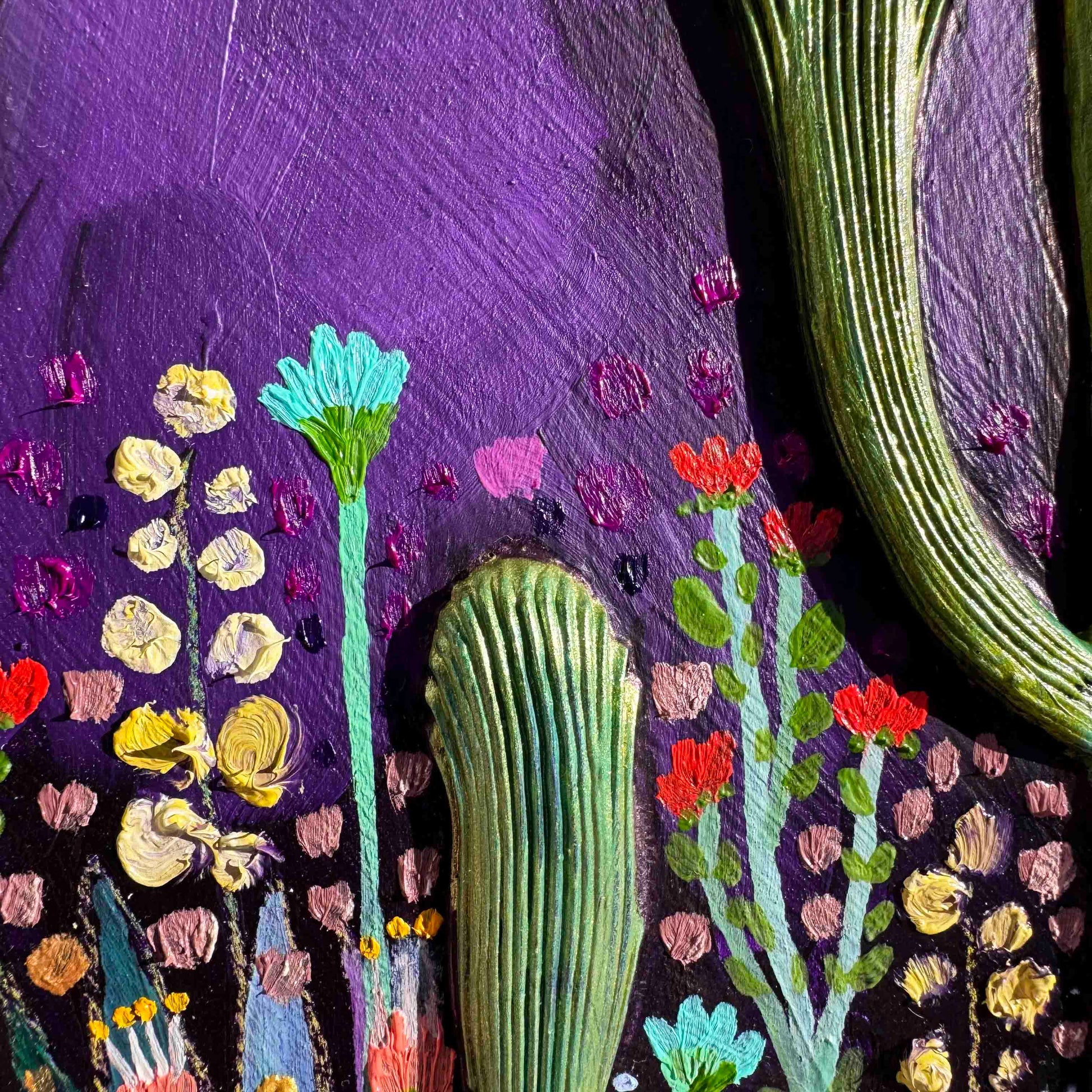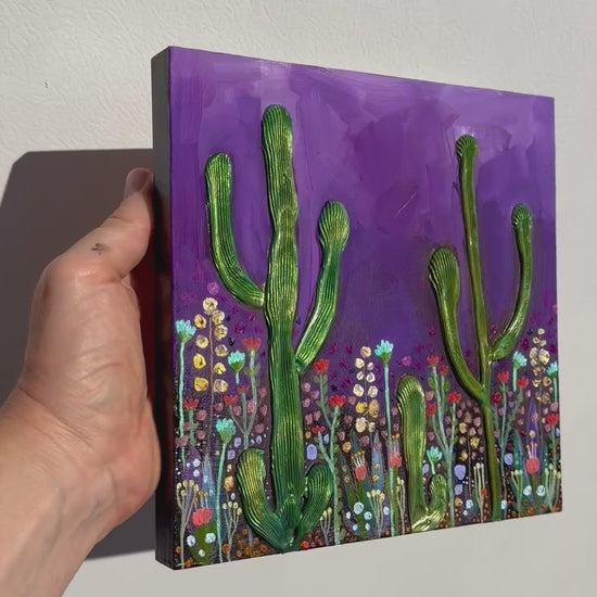 Desert Flowers in Dark Violet - 8 1/16 x 8 1/16" - Oil Painting