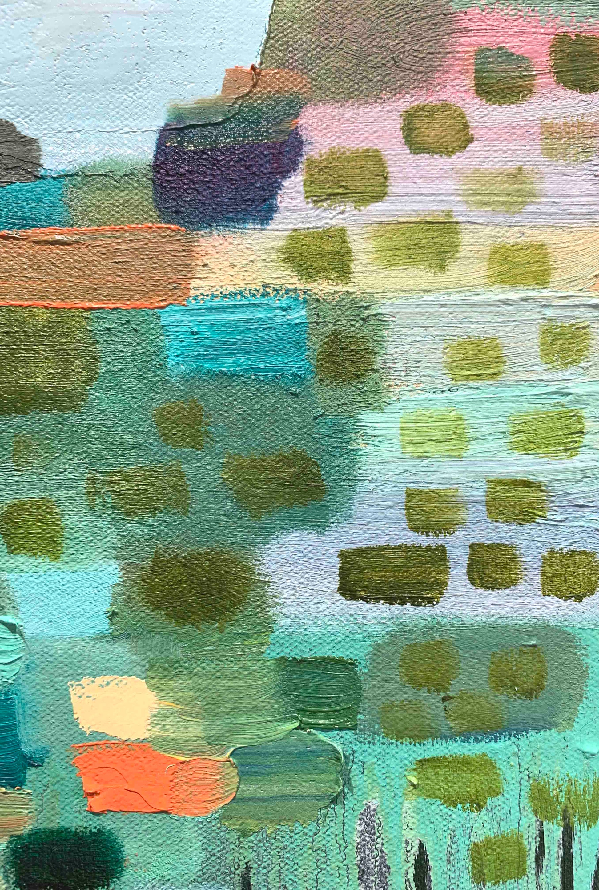 Oil and acrylic on a handmade canvas.