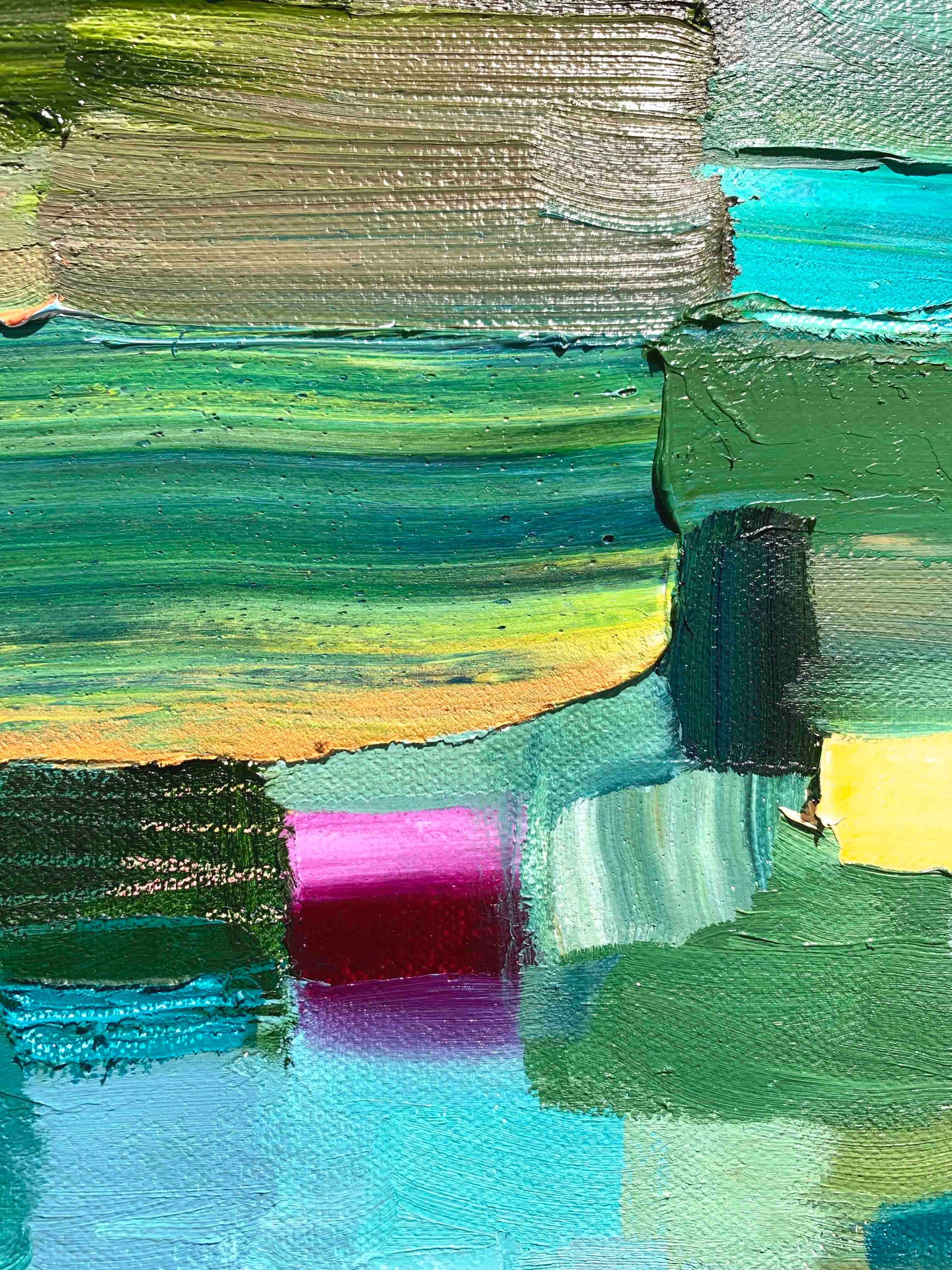 This is an original oil painting. The sides are painted gloss black and there is a wire on the back. It comes ready to hang with no framing needed.