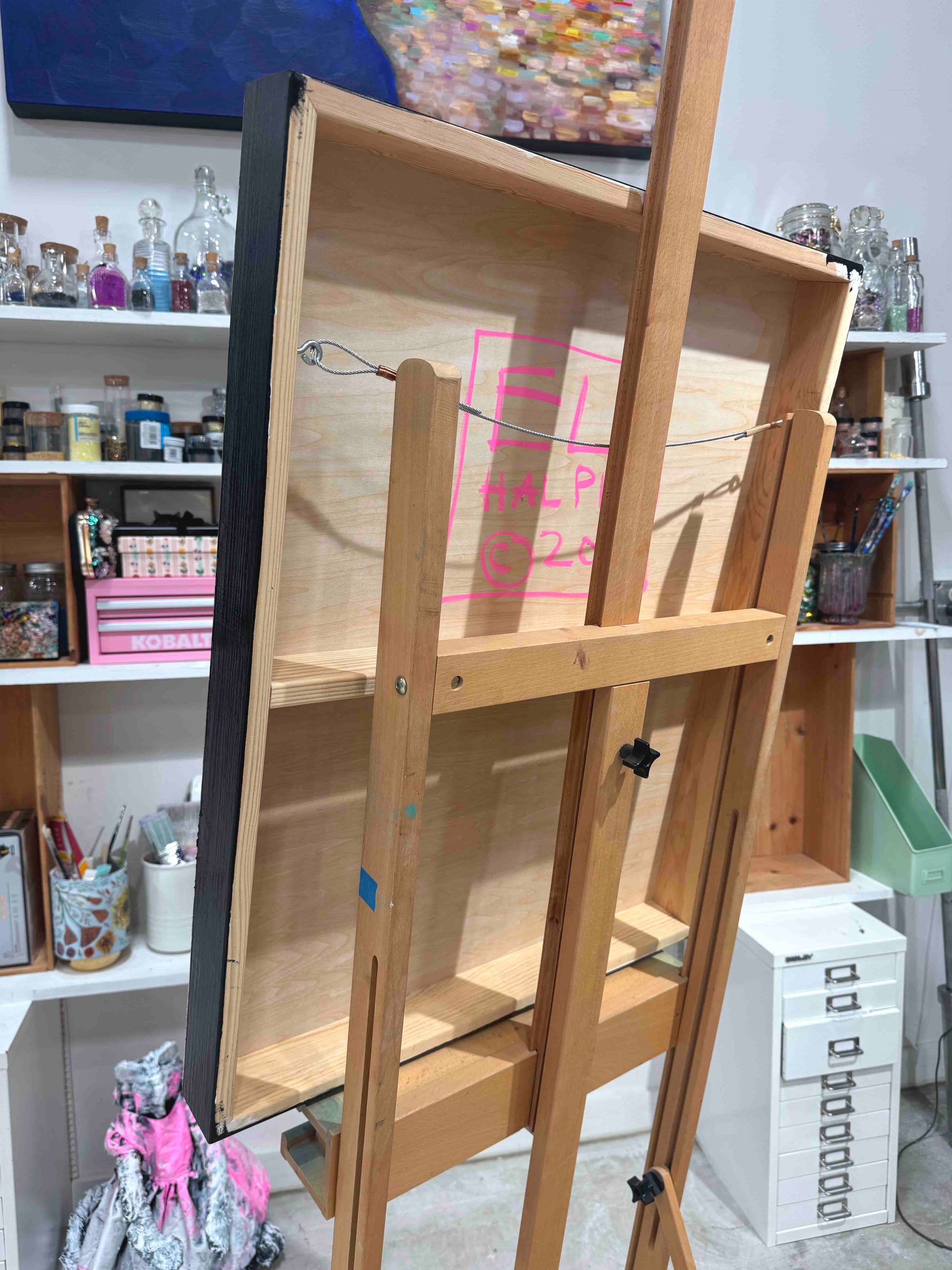 This is an original oil painting. The sides are painted gloss black and there is a wire on the back. It comes ready to hang with no framing needed.