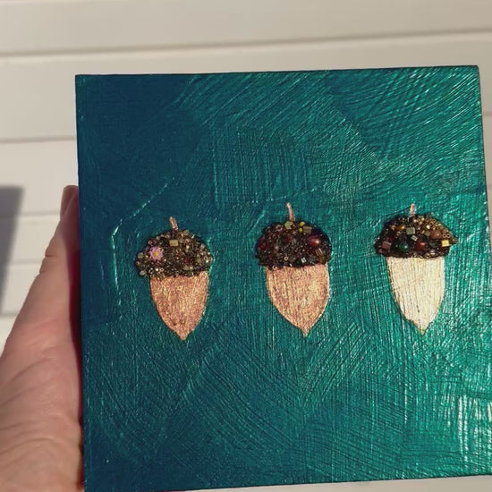 Three Jeweled Acorns - 6x6" - Oil Painting
